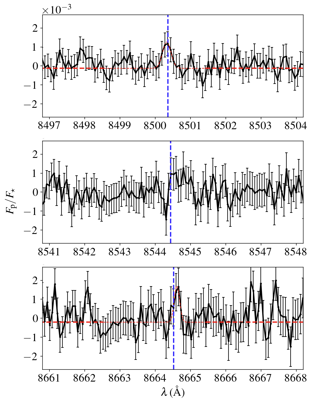 and 8664.52 Å (vacuum wavelengths) were detected, with their